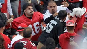 Anyways, that interaction I encountered is reflective of the heinous Niners vs. Raiders rivalry. Did you know that in 2011 during a preseason game between the teams in Candlestick one man was beaten unconscious in the bathroom, while two others were shot in the parking lot after the game? Jesus fucking Christ. And it gets even worse, later in 2014 at O.Co 31 fans were detained and imprisoned, while 91 others got kicked out of the stadium for fighting each other. Pretty fucking badass.